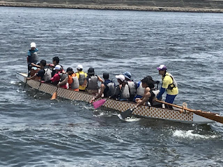 日曜日はというと、朝からカンカン照りの強風が吹く中の乗艇練習。